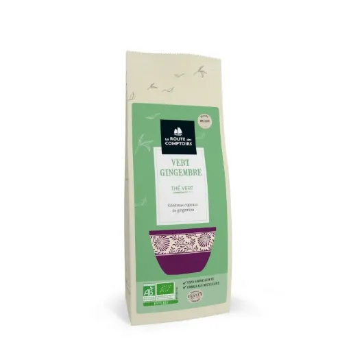 THÉS VERTS SANS ARÔME AJOUTÉ - VERT GINGEMBRE - Généreux copeaux de gingembre sachet 100 g